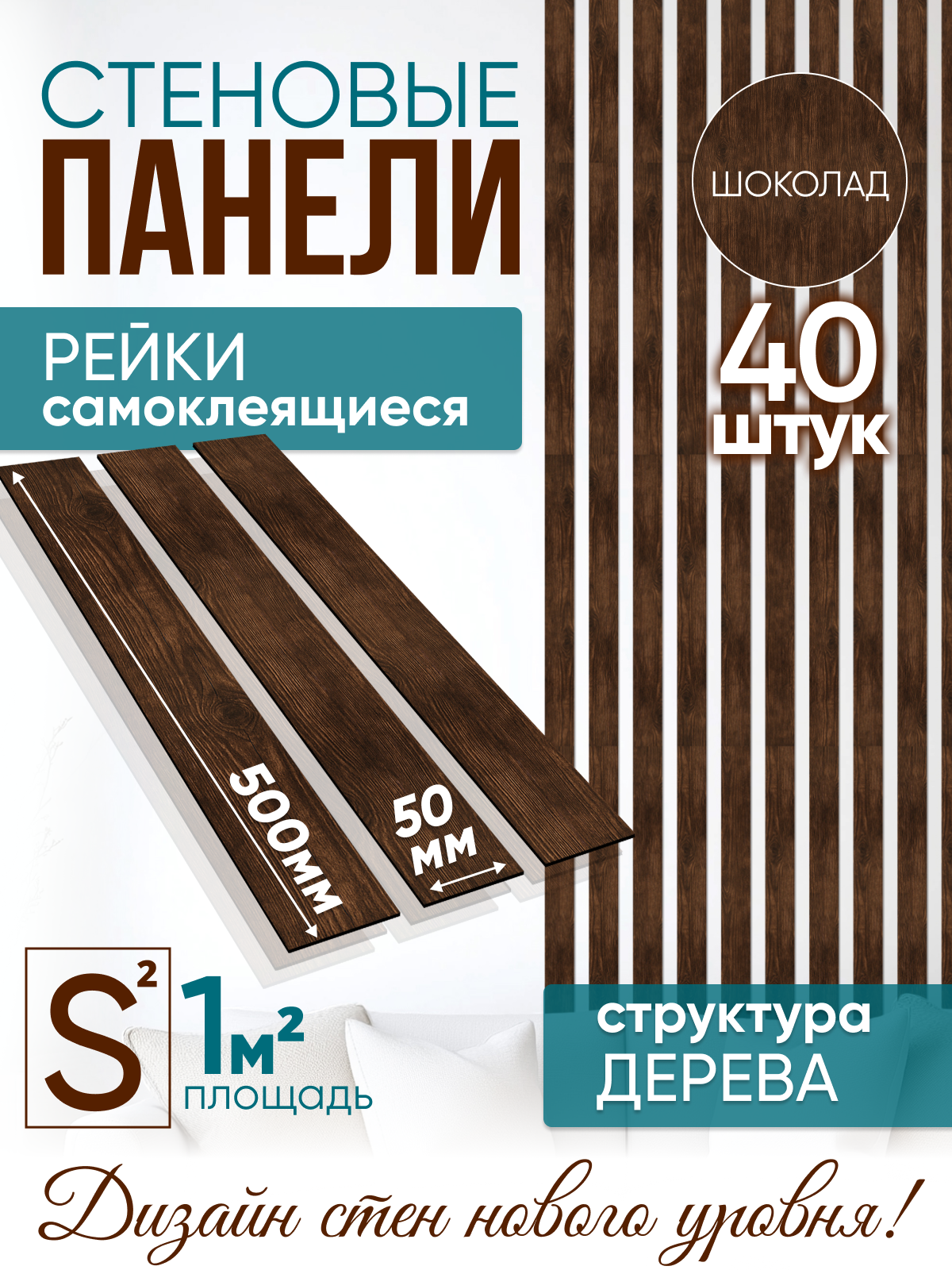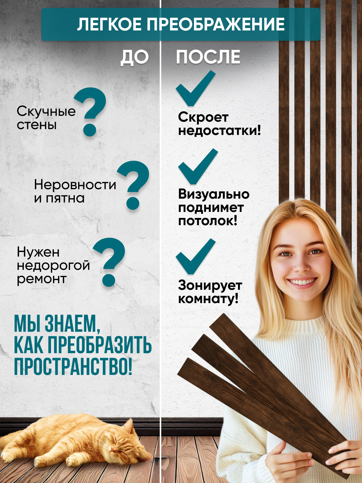 Панели самоклеящиеся для стен, деревянные рейки, 5см, Коричневый дуб – купить за 1 890 ₽ | Трафаретово - Укрась дом с душой!
