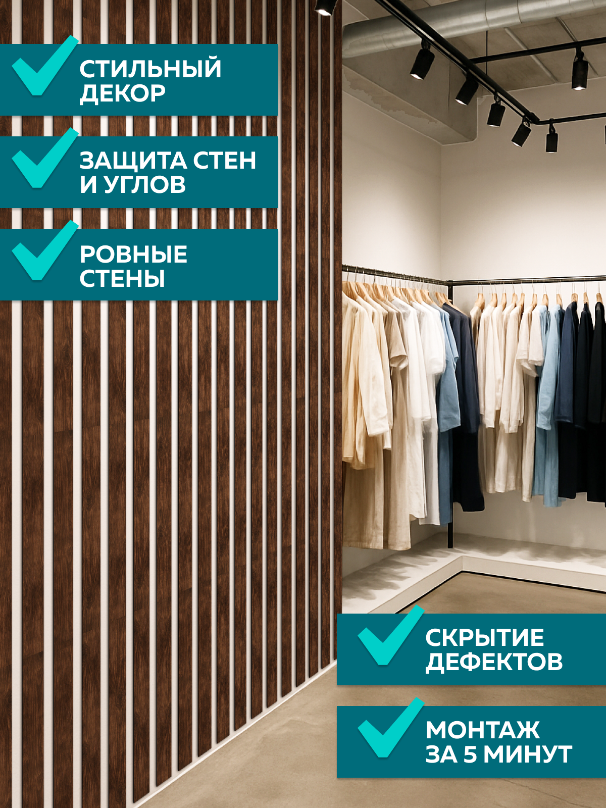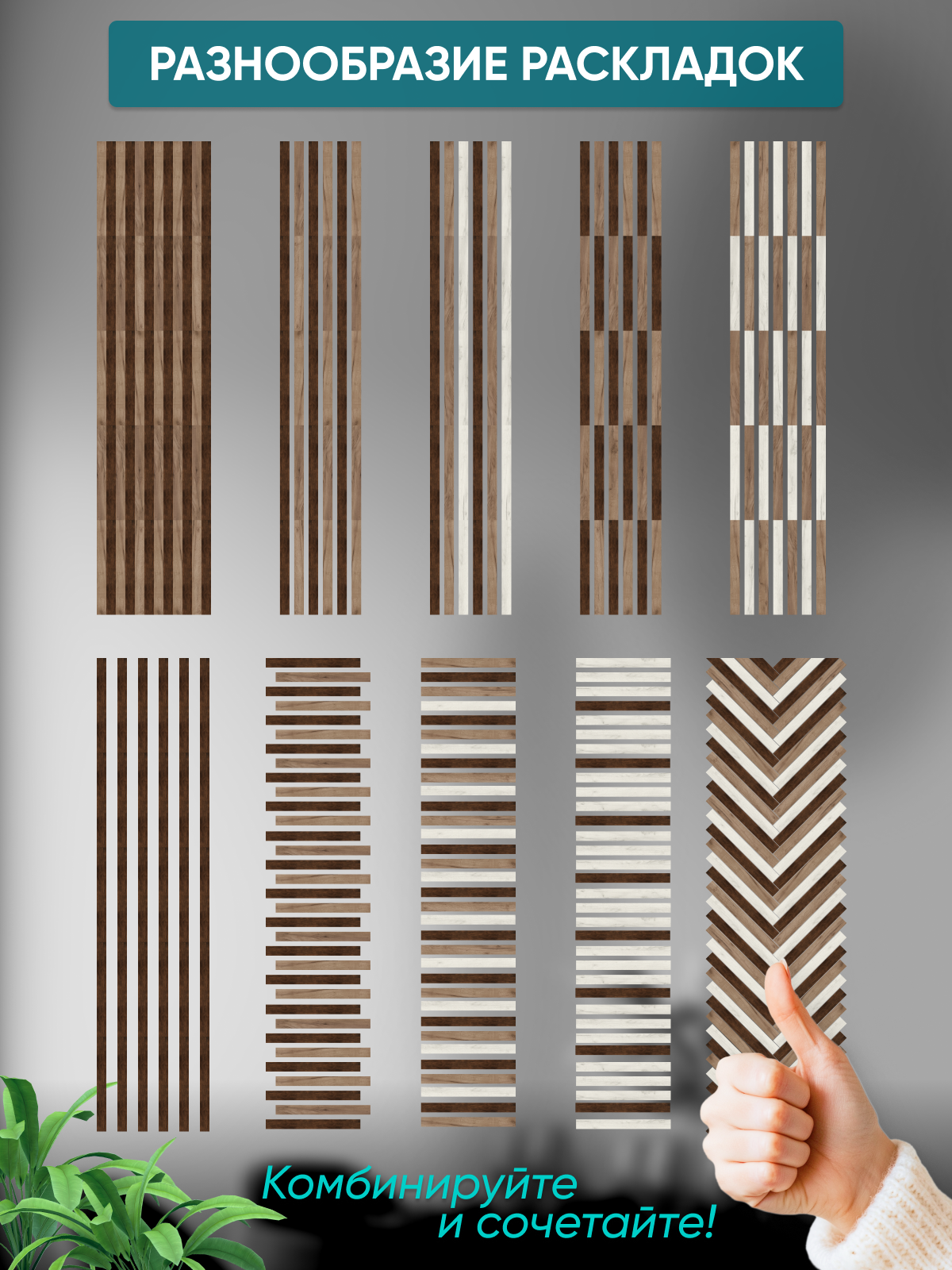 Создайте уникальный 3D-эффект в своем интерьере с помощью самоклеящихся декоративных реек. Эти реечные деревянные элементы идеально подходят для декорирования стен в спальне, кухне или любой другой комнате. Комплект включает в себя двухсторонний скотч для быстрого и удобного монтажа, что делает их идеальным решением для самостоятельной отделки.