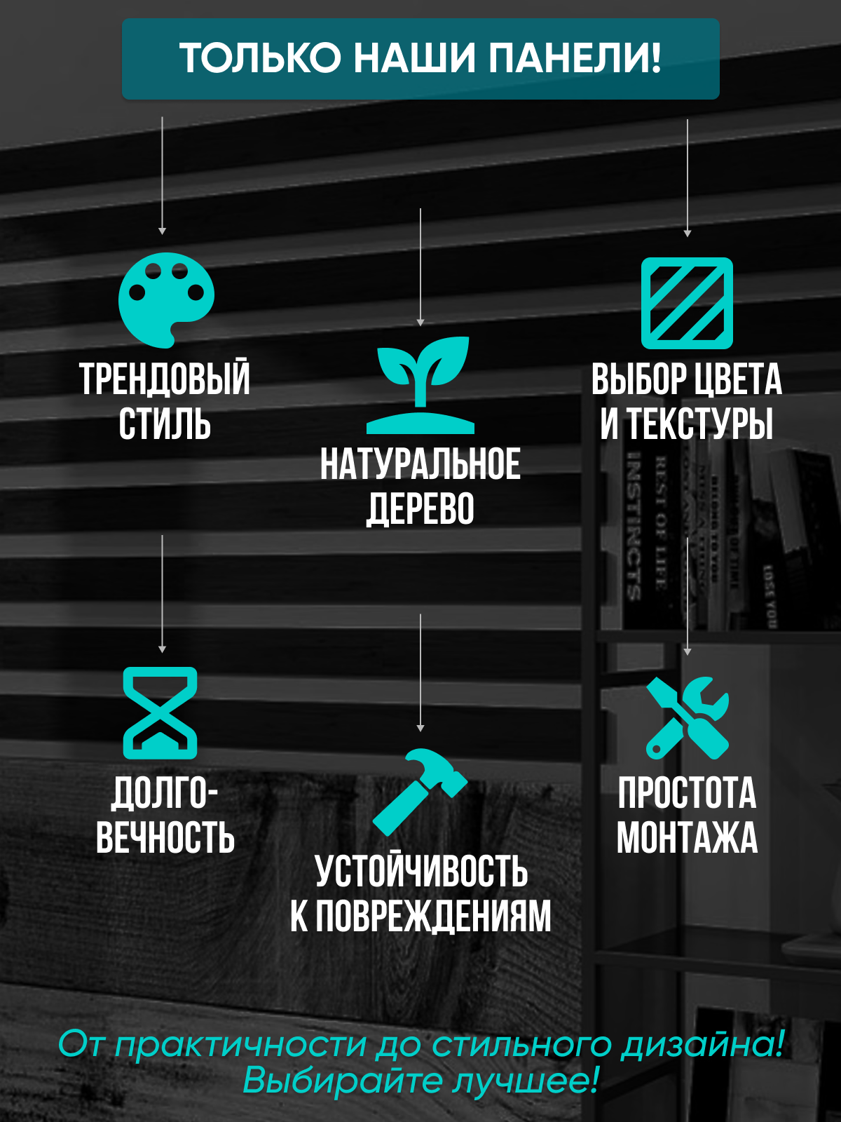 Наши настенные панели изготовлены из высококачественного ЛХДФ — надежного материала, который обеспечивает долговечность и изысканный внешний вид. Реечки обладают рельефной поверхностью, напоминающей натуральное дерево, и создают эффект 3D-декора, который привнесет в ваш интерьер стиль и уют. Реечные декоративные панели отлично подходят для отделки стен под дерево, добавляя современности и эстетики в оформление дома.