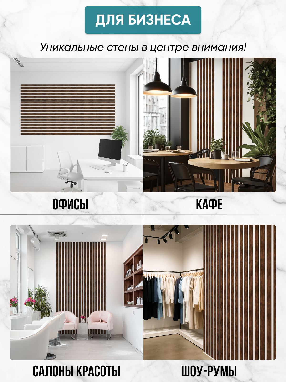 Декоративные самоклеящиеся стеновые панели в форме реек из ЛХДФ для стильного декора интерьера.