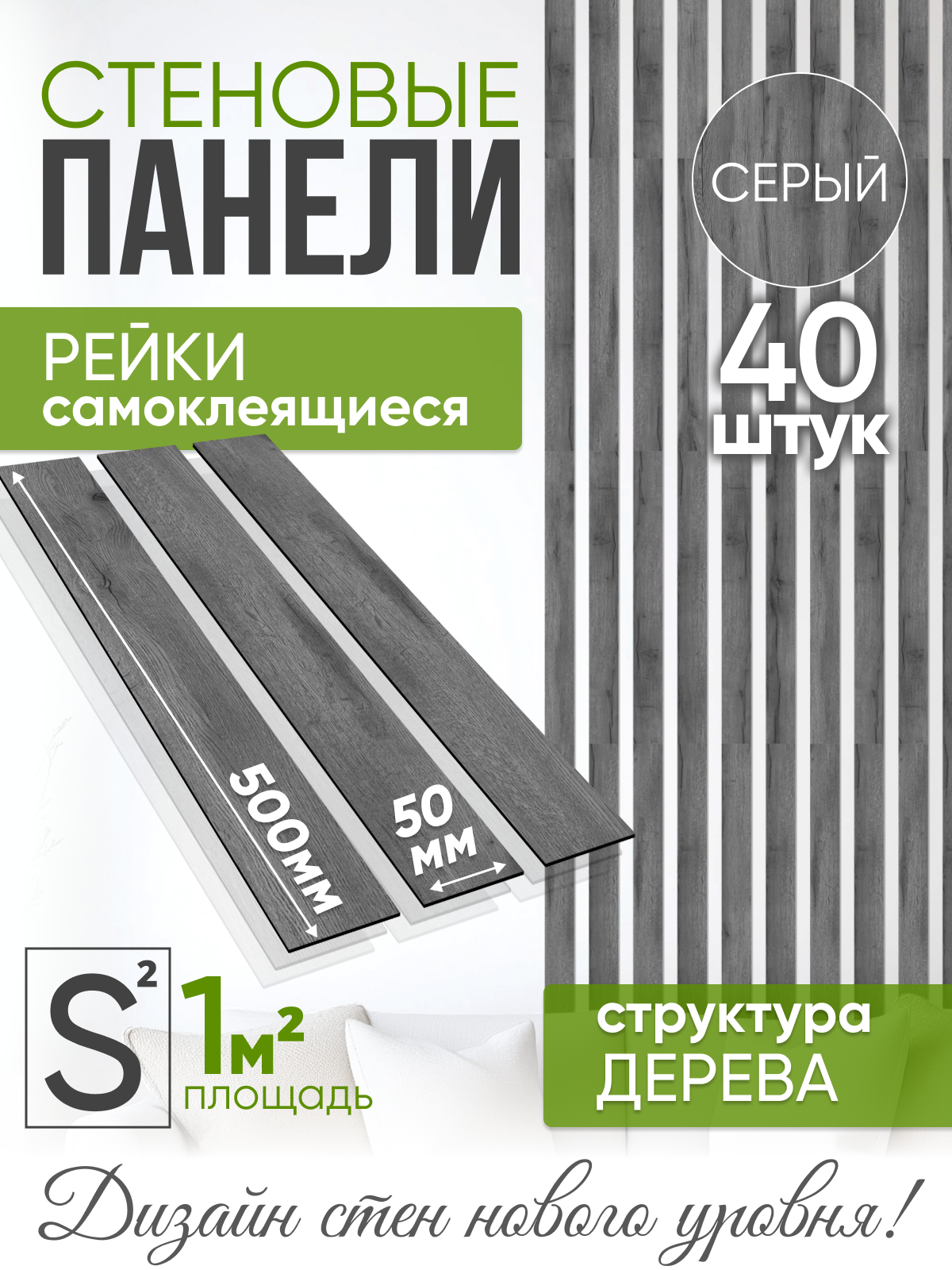 Панели самоклеящиеся для стен, деревянные рейки, 5см, Серый дуб – купить за 1 890 ₽ | Трафаретово - Укрась дом с душой!
