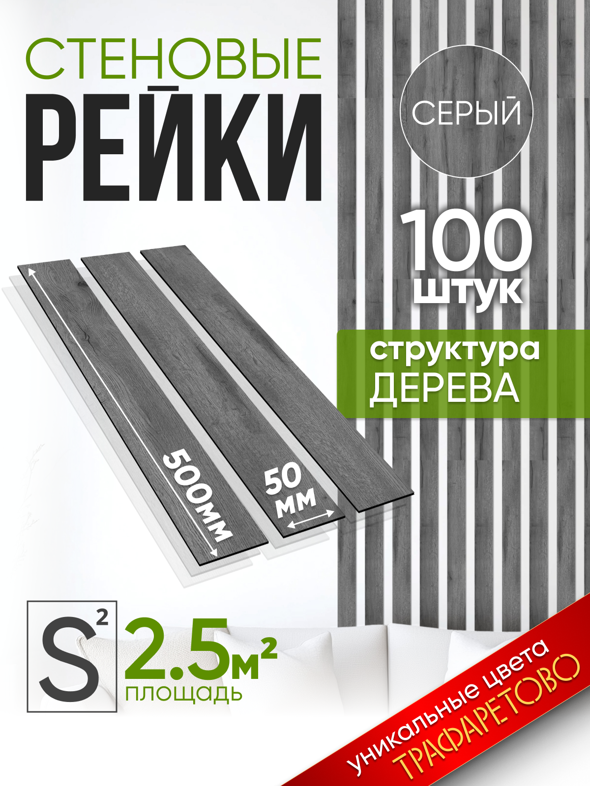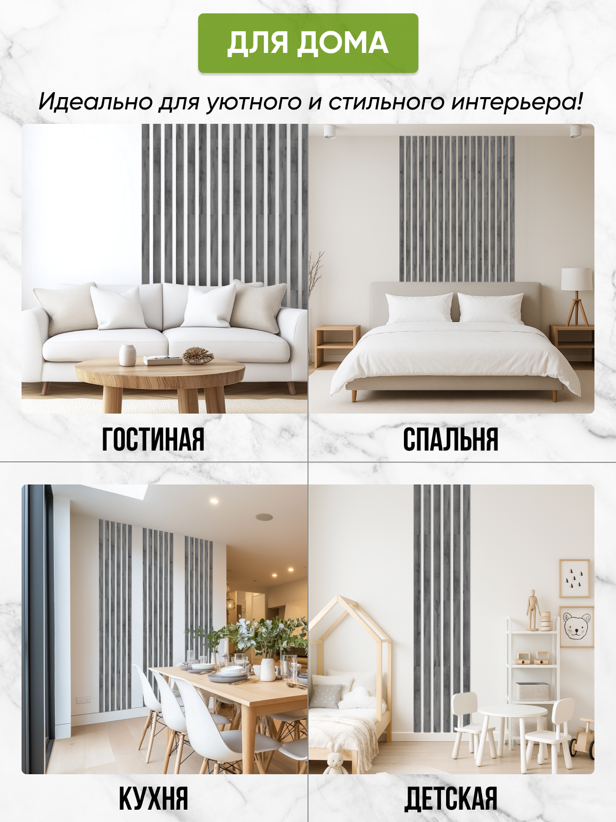 Панели самоклеящиеся для стен, деревянные рейки, 5см, Серый графит 100шт – купить за 3 590 ₽ | Трафаретово - Укрась дом с душой!