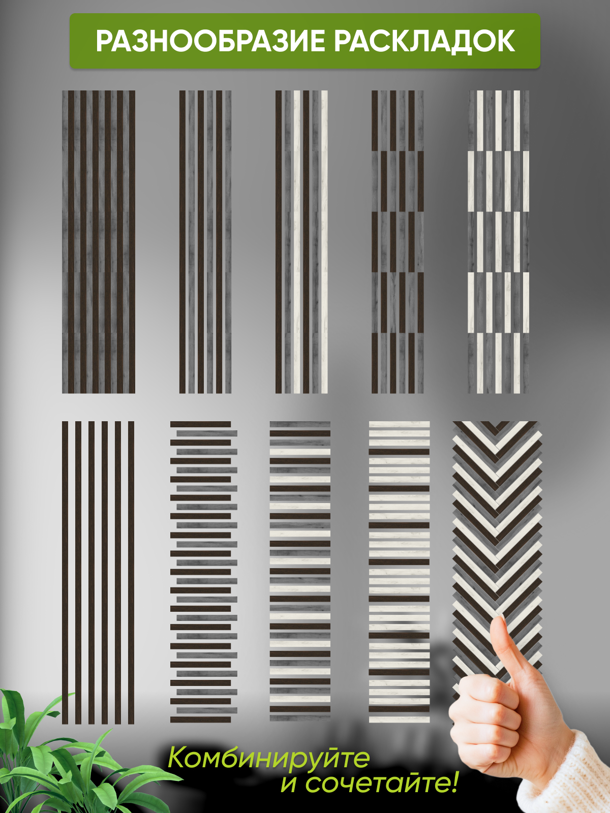 Создайте уникальный 3D-эффект в своем интерьере с помощью самоклеящихся декоративных реек. Эти реечные деревянные элементы идеально подходят для декорирования стен в спальне, кухне или любой другой комнате. Комплект включает в себя двухсторонний скотч для быстрого и удобного монтажа, что делает их идеальным решением для самостоятельной отделки.